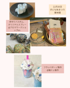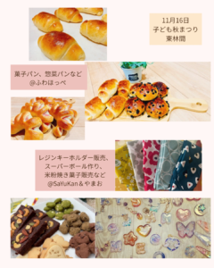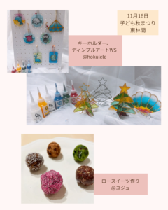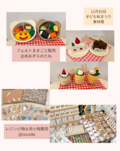ワークショップ、小物販売、軽食、子ども店長ゲームコーナーなど。合わせて16店舗✨